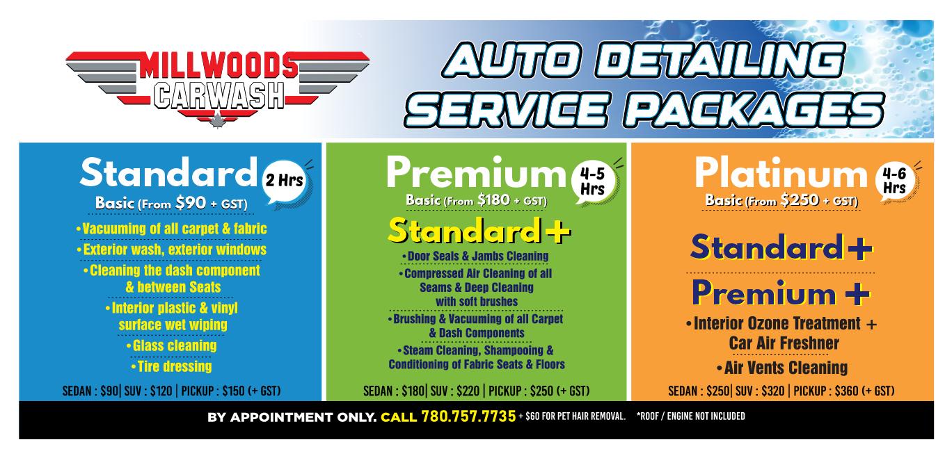 NOTE: Car detailing services available by appointment only. Please call 780-757-7735 to book.